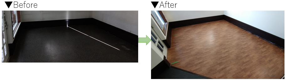 打合せスペースとなるご予定の部屋の床は、クッションフロアを新しく貼替え。
