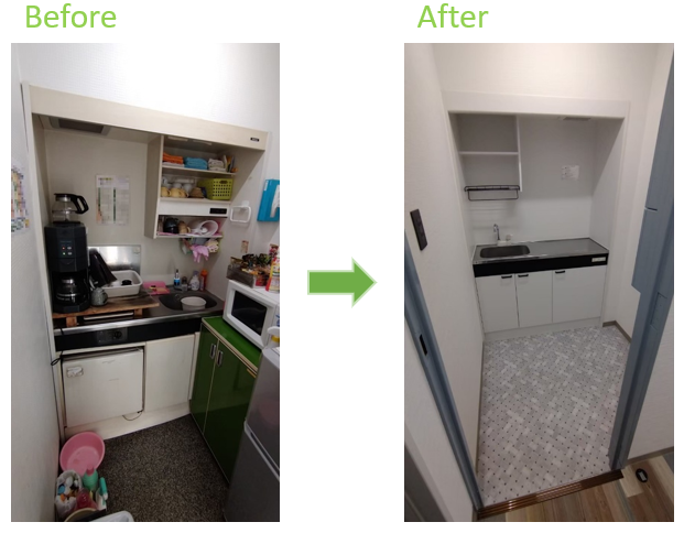 古い電気温水器がキッチン下のスペースを占領してしまっているので、スッキリとさせて収納を確保したいとのご要望でした。